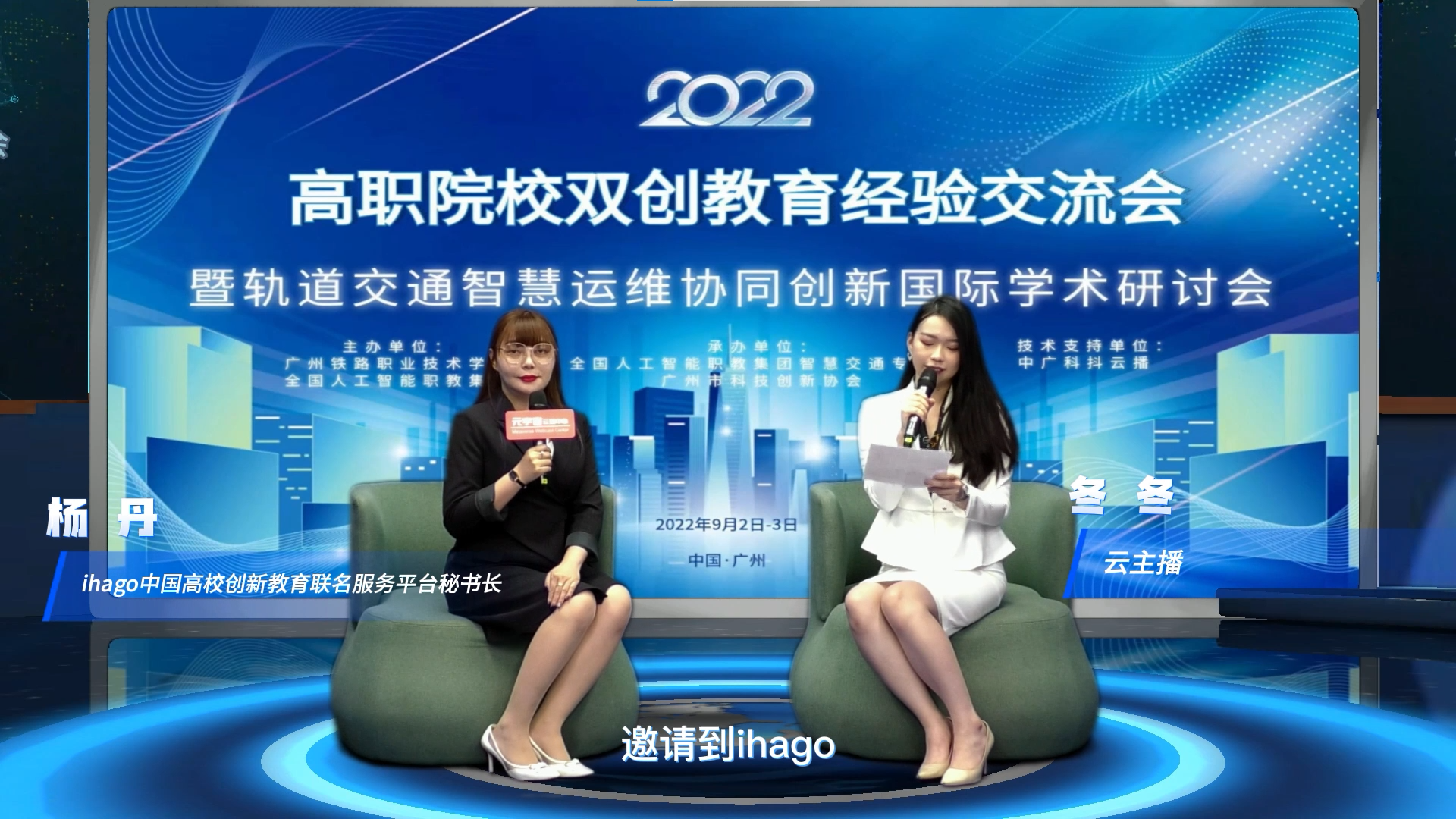 高职院校双创教育经验交流会暨轨道交通智慧运维协同创新国际学术研讨会云采访:ihago中国高校创新教育联名服务平台秘书长 杨丹2022/092022年9月,高职院校双创教育经验交流会暨轨道交通智慧运维协同创新国际学术研讨会云采访:ihago中国高校创新教育联名服务平台秘书长 杨丹